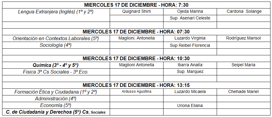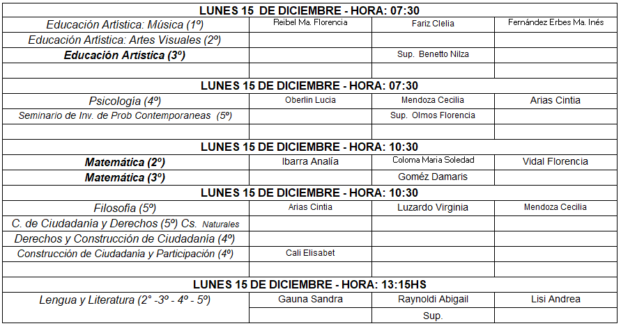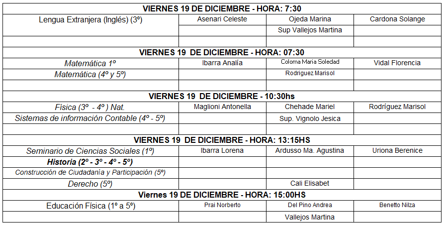 Observación: Los espacios marcados con negrita tienen alumnos inscriptos para rendir exámenes previos.